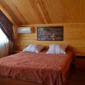 В теплое время года к вашим услугам переносные мангалы со всей сопутствующей атрибутикой, а в зимнее – каменные мангалы внутри веранд. Здесь же полностью укомплектованная кухня со всей необходимой посудой, бытовой техникой и спутниковым телевидением. А из окон светлой и просторной веранды, где могут разместиться полсотни гостей, открывается потрясающий живописный вид, которым можно наслаждаться бесконечно.