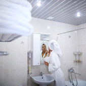 На территории санатория находится собственный крытый бассейн. Есть тариф включающий четырехразовое питание по системе «Шведский стол».