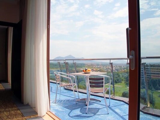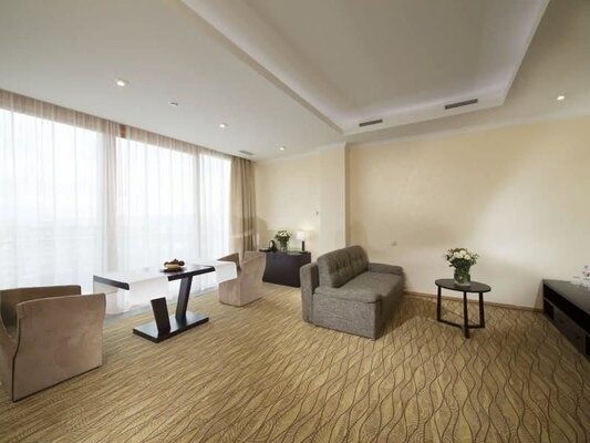 Уютный и камерный VIP-зал питания «Сан Сити» расположен на 4 этаже корпуса «Бештау», между жилыми корпусами «Машук» и «Эльбрус». Он рассчитан всего на 60 мест и предназначен для питания гостей, отдыхающих в номерах категории «Студия», «Джуниор сьют», «Сьют», «Люкс», «Люкс Восточный» и «Президентские апартаменты».