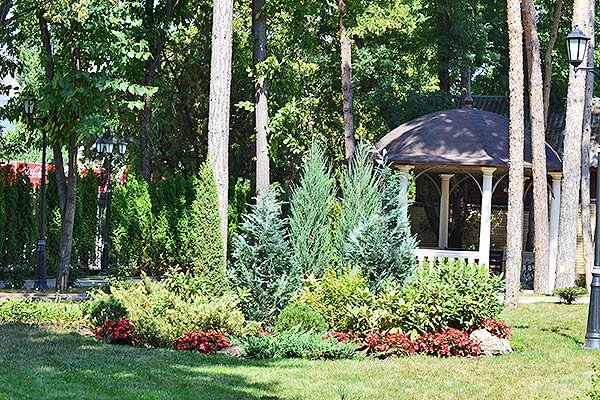 - бювет и источник на территории — с минеральной водой Славяновская, Ессентуки, Кисловодский нарзан;