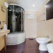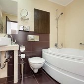 - семиэтажный корпус: зал питания, часть апартаментов, бювет с минеральной водой.