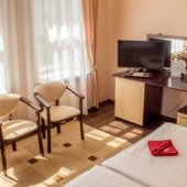 В ресторане санатория гостям сервируют «шведский стол». В лобби и зале для завтрака можно воспользоваться бесплатным Wi-Fi.