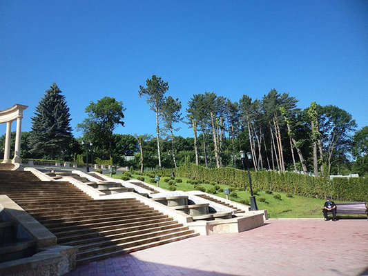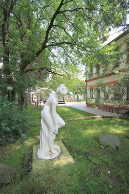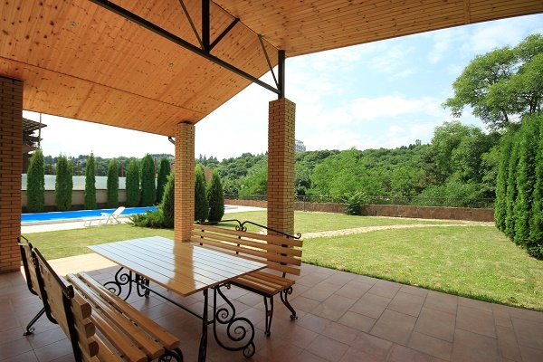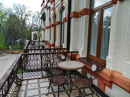 Красивая архитектура конца XIX века, многовековые деревья и оригинальный ландшафтный дизайн создают особую атмосферу комфорта и спокойного отдыха. Территория пансионата площадью 8000 кв. метров круглосуточно охраняется. Имеется бесплатная автостоянка.