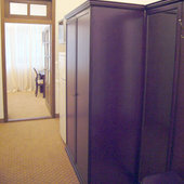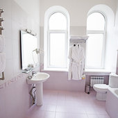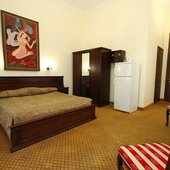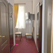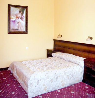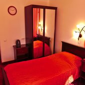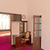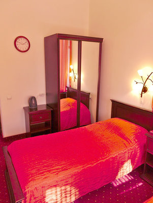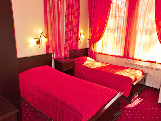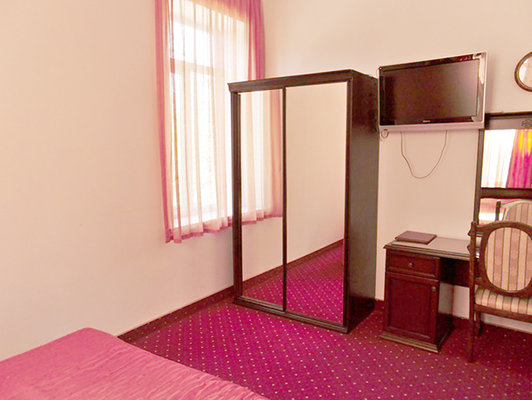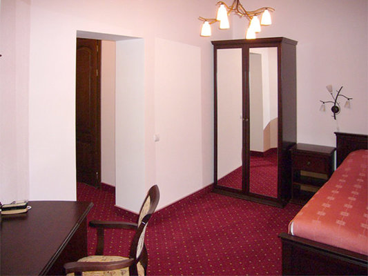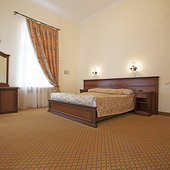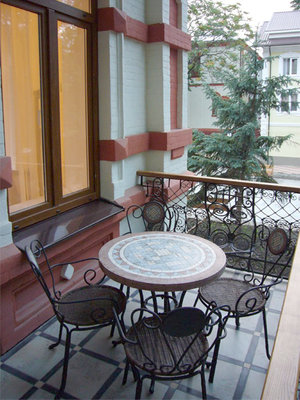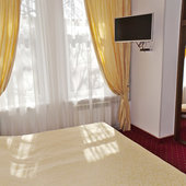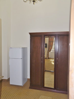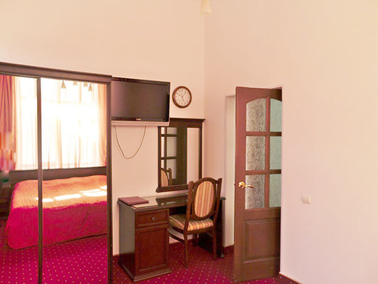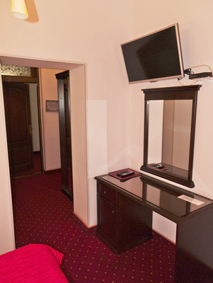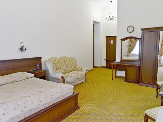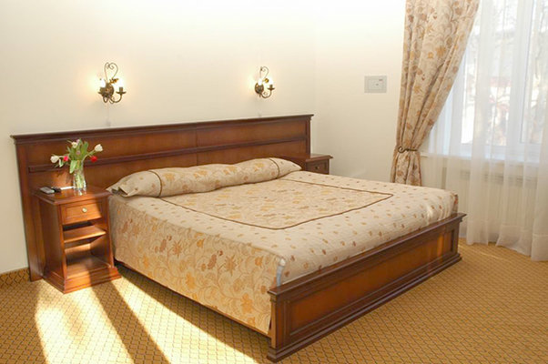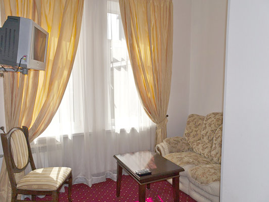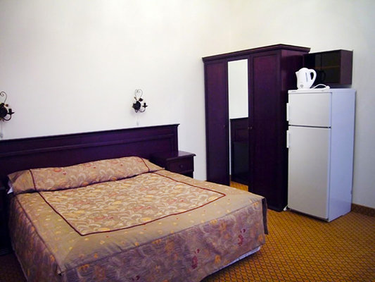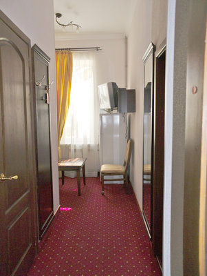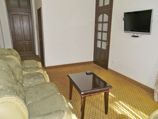 В номерах уютно, спокойно и комфортно: просторные жилые и ванные комнаты, старинные балконы (до 17 кв. м), высокие потолки (до 4,5 м), добротная мебель из натурального дерева, выполненная на заказ, телевизоры в каждой комнате, персональные сейфы, индивидуально регулируемое отопление, кондиционеры, беспроводные телефоны, холодильники, мини-бар, набор посуды и т. д.