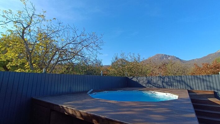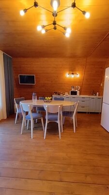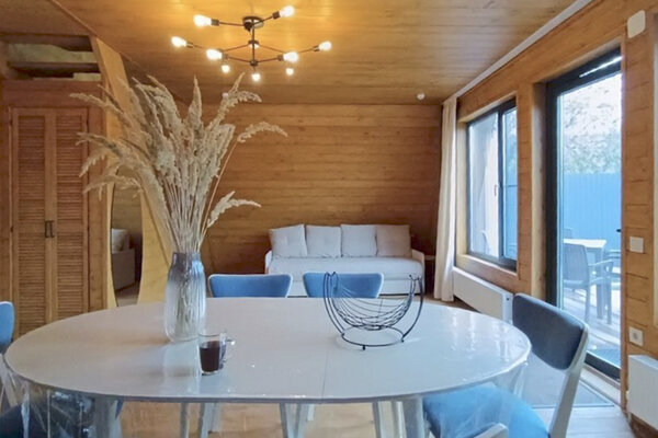 Главная особенность дома — круглогодичный бассейн с подогревом, где можно расслабиться в любое время года. Просторная терраса и зона барбекю во дворе созданы для приятного времяпрепровождения на свежем воздухе (шампуры предоставляются, уголь и дрова — с собой).