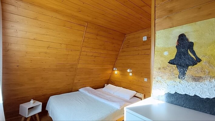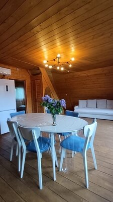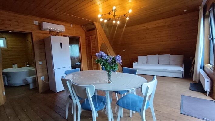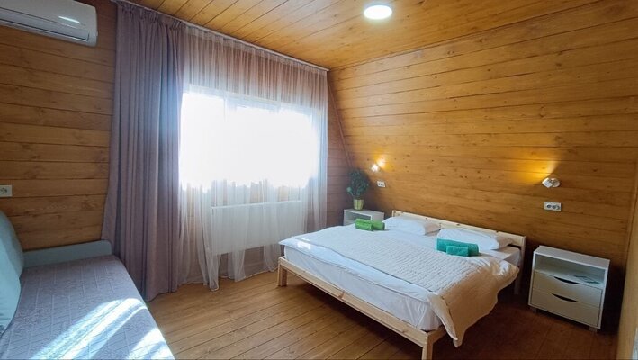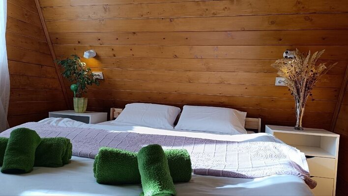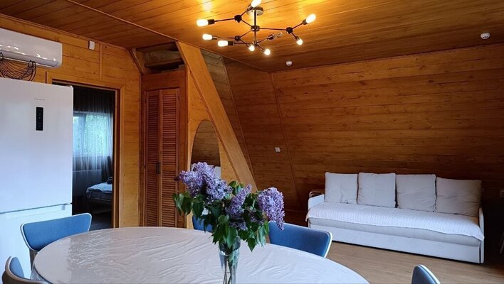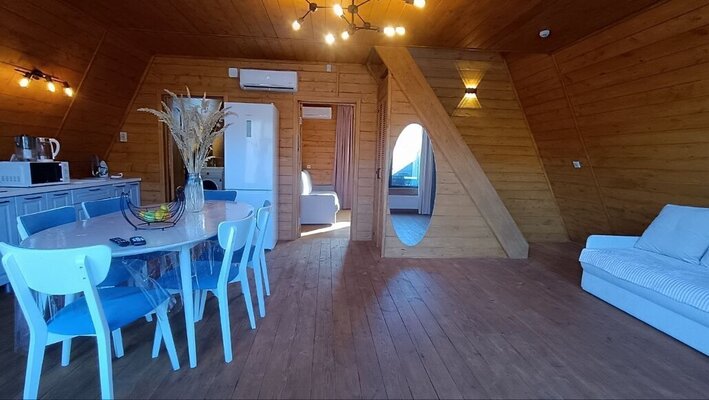 «Тот самый дом» — это уникальный двухэтажный дом в форме буквы А с уютной мансардой, расположенный в живописном месте с потрясающим видом на гору Бештау. В доме есть все для комфортного отдыха большой компанией – до 12 человек. На первом этаже расположены спальня с двуспальной кроватью и диваном, современная кухня-гостиная и ванная комната с полноценной ванной. На втором этаже – еще одна спальня с отдельным санузлом и зона отдыха с панорамным видом. Мансарда оборудована удобным двуспальным матрасом.