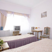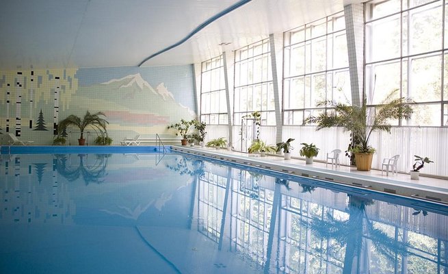 В санатории есть крытый бассейн размером 24мх12м с каскадными душами, сауна. Трехразовое питание входит в стоимость всех тарифов.