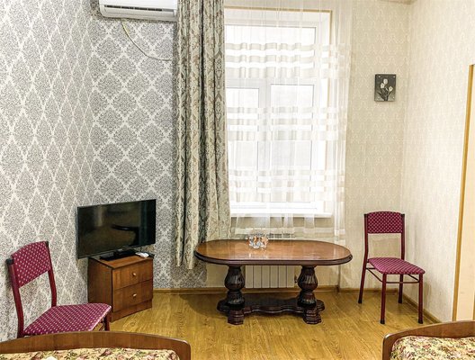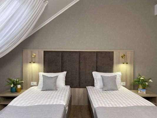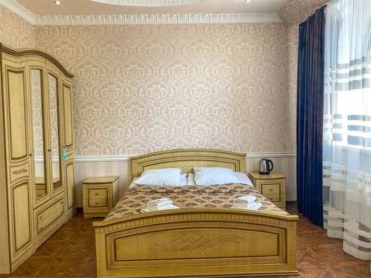 Отель находится в трёхэтажном здании, удобно расположенном вблизи пересечения проспекта Кирова и пешеходного проспекта отдыха, всего в 3 минутах езды от железнодорожного вокзала.