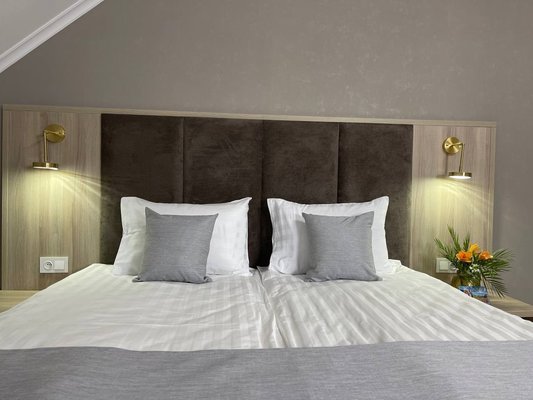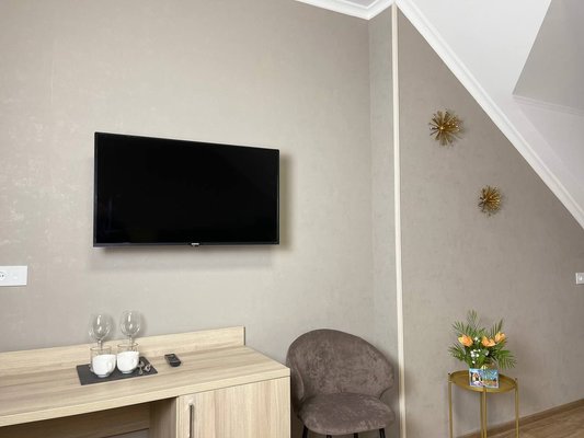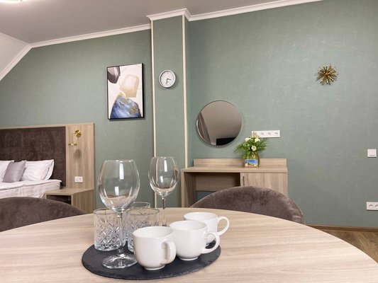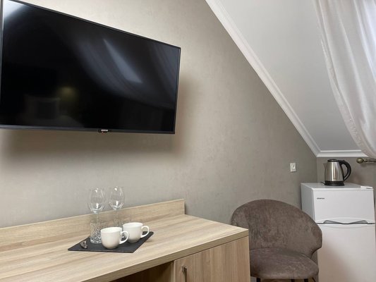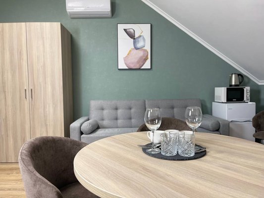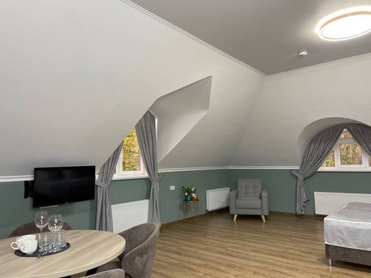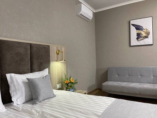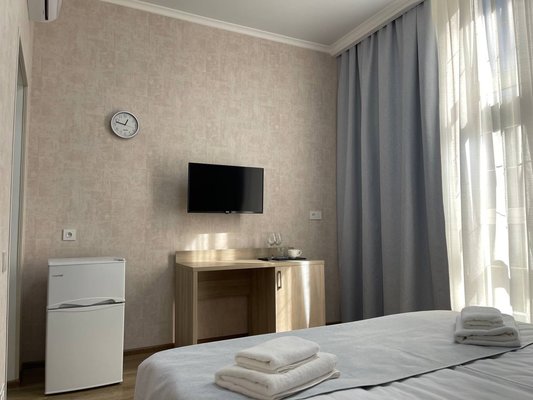 Предлагается размещение для 40 человек в простых стандартных номерах, просторных номерах-студио и комфортабельных номерах Делюкс, в каждом из которых есть отдельная ванная комната с душем, а также бытовая техника, включая электрический чайник, холодильник и телевизор.