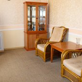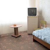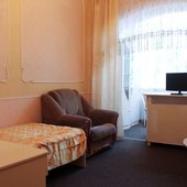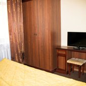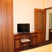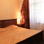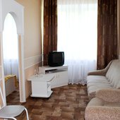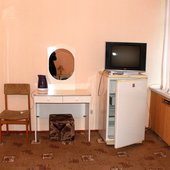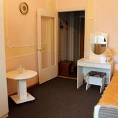 Состоит из двух отдельных корпусов. Вместимость санатория рассчитана на 150 мест. На территории жилого корпуса располагаются номера эконом-класса, улучшенной комфортности и люкс.