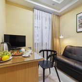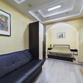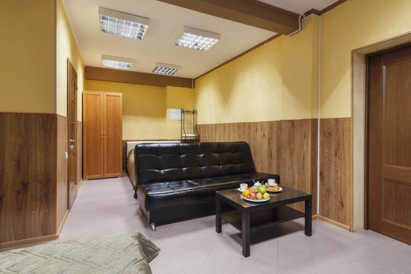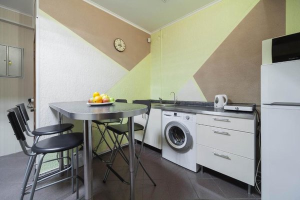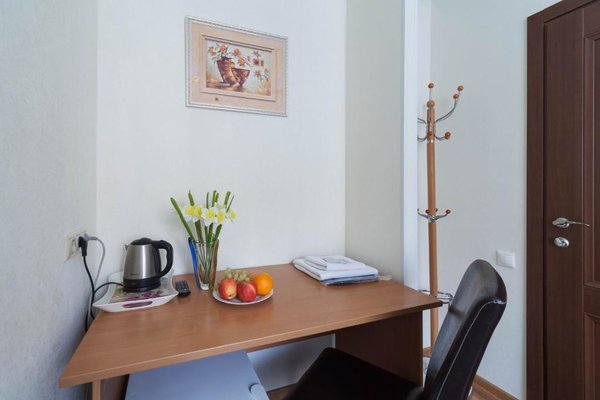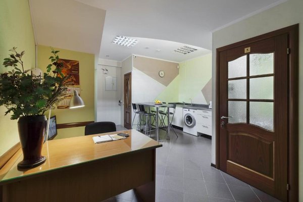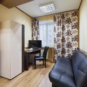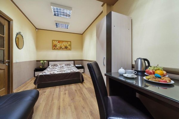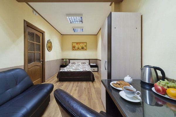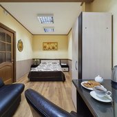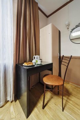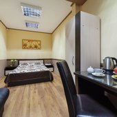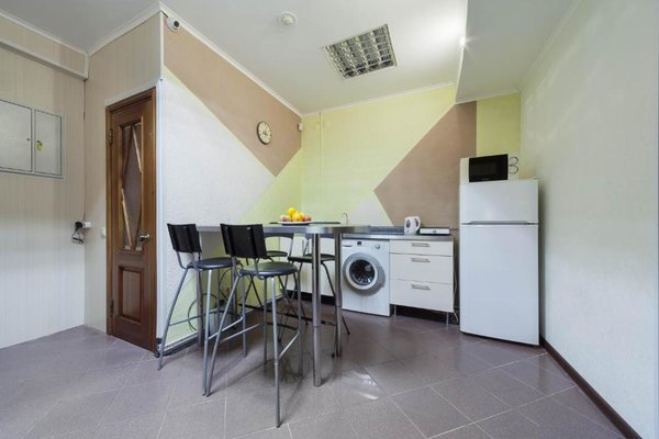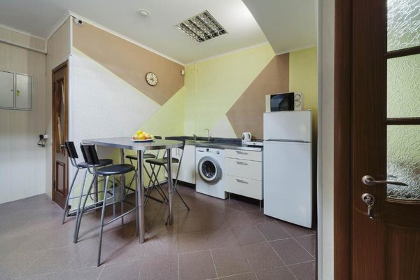 На первом этаже мини-гостиницы оборудована уютная кухня, где можно попить чай, разогреть еду или даже приготовить перекус.