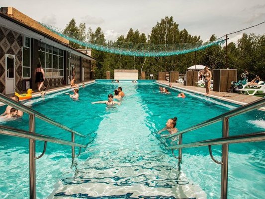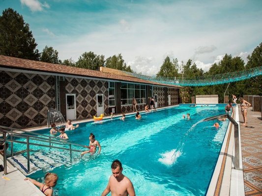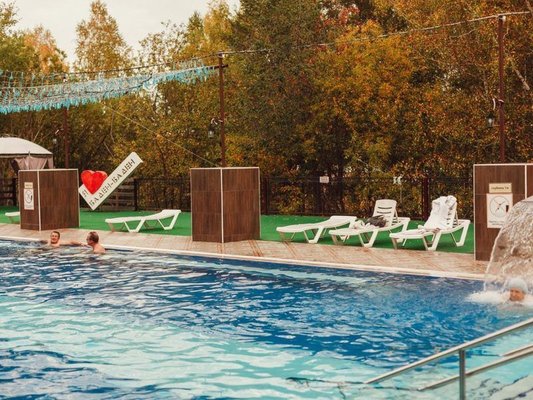 Погрузившись в теплые воды открытого бассейна, гости могут в полной мере насладиться водными развлечениями. Здесь их ждут гидромассажные установки для спины, освежающие каскадные водопады «Виктория» и уютные джакузи. Даже самые маленькие посетители могут получить истинное удовольствие от купания в этом уникальном месте. А летом вокруг бассейна оборудованы зоны для загара с комфортными лежаками и зонтиками.