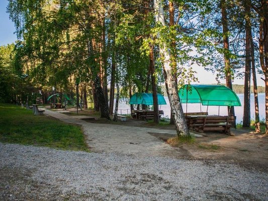 Просторная деревянная беседка расположена на первой береговой линии. Гости могут насладиться атмосферой уюта и комфорта, располагаясь на веранде с удобным столом и скамейками, а также воспользовавшись мангальной печью для приготовления пищи.