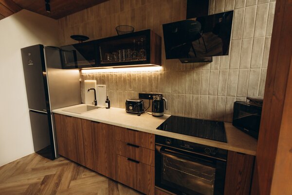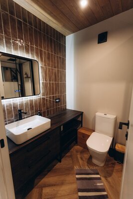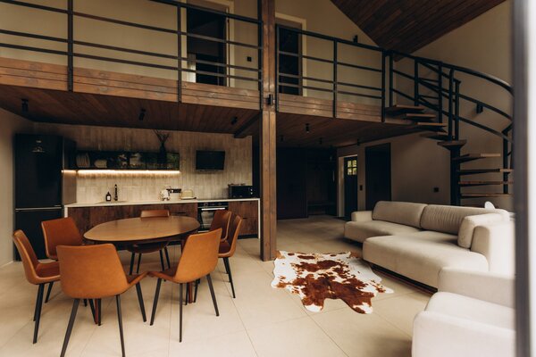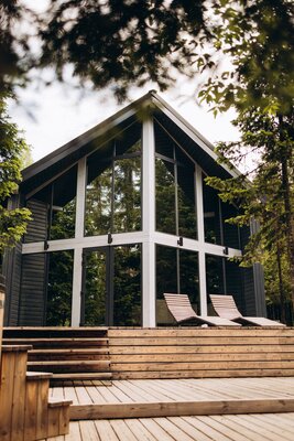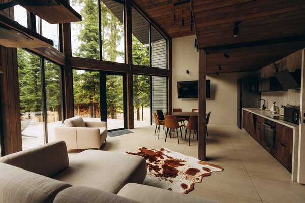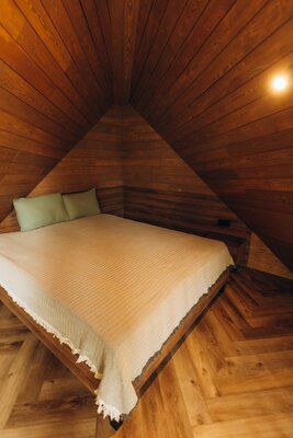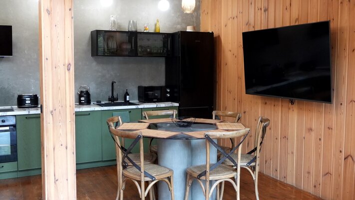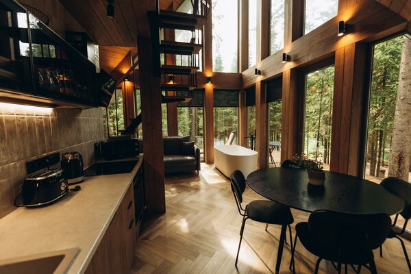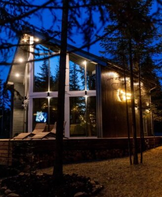 К вашим услугам три варианта размещения: уютный дом «Классика» с камином (на 6 человек), просторная «Семейная резиденция» (до 7 гостей) и романтичная «Студия» с панорамной ванной (на 4 человека).