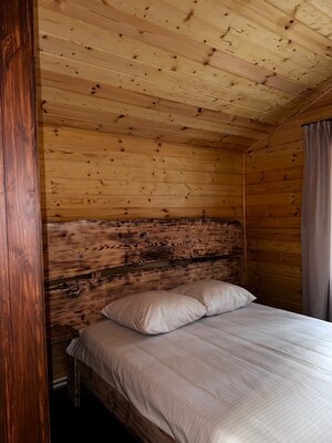 На территории базы имеется закрытая парковка для гостей. При бронировании домика парковка бесплатная.