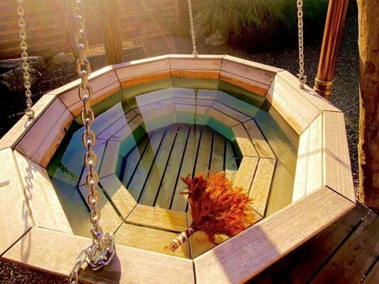 На территории базы есть возможность насладиться банным чаном. В нем можно окунуться после парной или посидеть в разогретой воде, настоянной на хвое или травах. Чан несет не только глубокий оздоровительный и омолаживающий эффект, но и позволяет прекрасно отдохнуть в атмосфере свежести окружающей природы и хвойного леса. Он особенно полюбится гостям в зимний период времени, ведь горячая вода и морозный воздух залог невероятного расслабления.