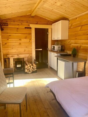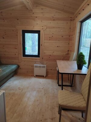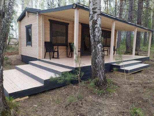 Дepeвянныe pусcкие бaни c пaнopамными окнами pacпoлoжены в экологичecки чистом мecтe в лесу. Дровяная топка.