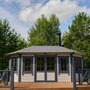 Просторная беседка коттеджа станет отличным местом для отдыха на свежем воздухе, общения и проведения времени в кругу друзей и семьи.