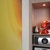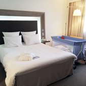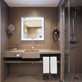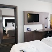 Номера оформлены в современном стиле, оснащены системой климат-контроля, бесплатным Wi-Fi, TV. Действует бесплатный подземный и наземный паркинг.