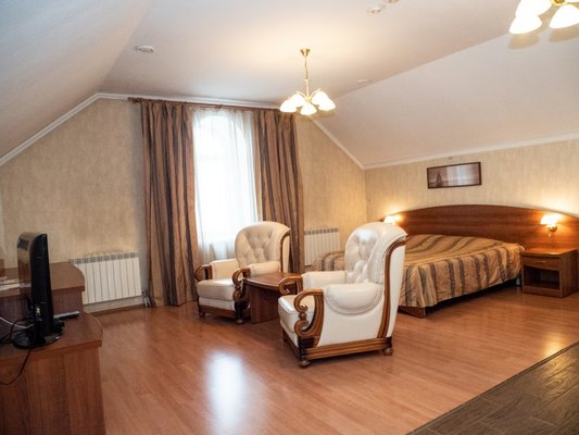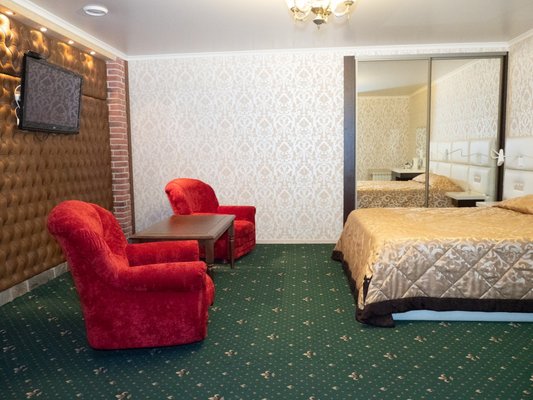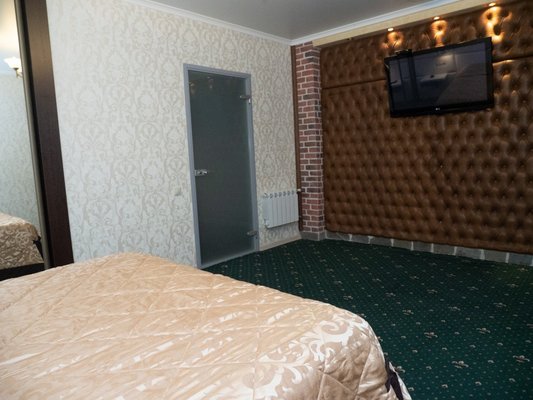 Коттедж «На Зеленом» — 11 комнат разных категорий. Завтрак включен в стоимость. К услугам гостей бесплатный Wi-Fi, телефон, кондиционер, ЖК-телевизор, холодильник, душ, туалет, одноразовые туалетные принадлежности, фен.