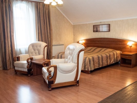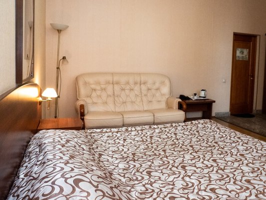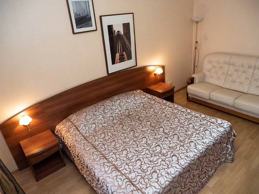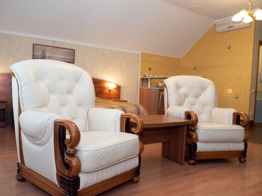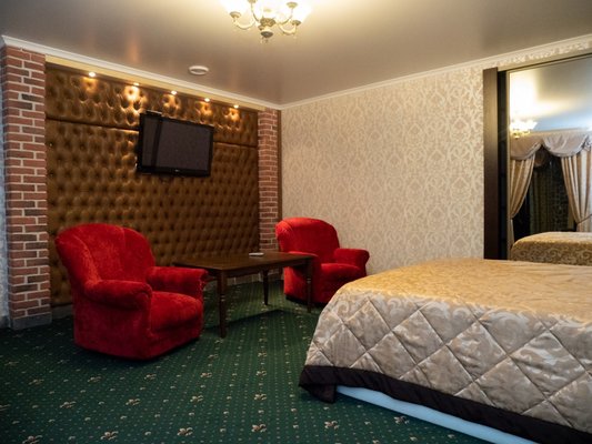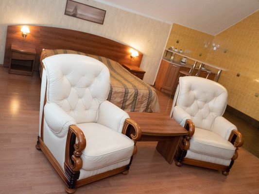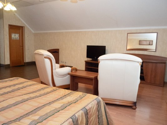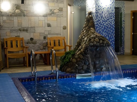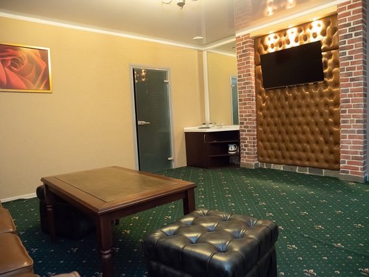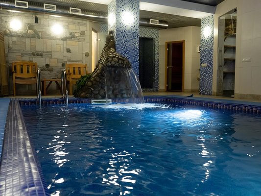 В распоряжении гостей сауна с бассейном 3х6 м, двухуровневая глубина 2 м с аттракционами (водопад,волна). Бесплатное обслуживание в комнатах, летний домик с барбекю, камин. Есть комнаты для курящих. Комнаты сдаются в долгосрочный и краткосрочный найм, бассейн и сауна по расписанию.