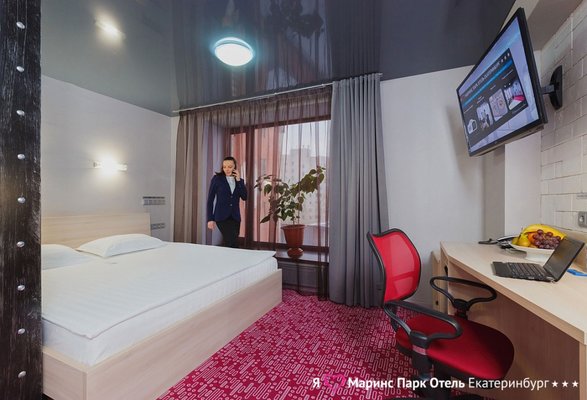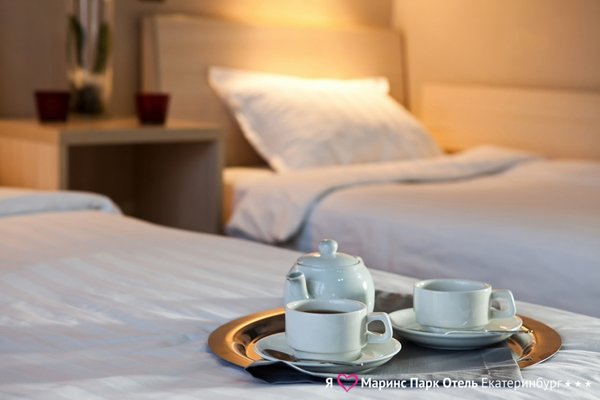Marins Park Hotel Yekaterinburg — крупный отель города, расположенный напротив железнодорожного вокзала в самом центре столицы Урала. Каждый номер отеля оснащенный всем необходимым для приятного отдыха: кровать с гипоаллергенным постельным бельем из натурального египетского хлопка и ортопедическим матрасом, ванная комната, косметика «Pearl», более 60 телеканалов высокой четкости, удобная рабочая зона, сейф, холодильник и пр. В отеле есть завтра по системе «Шведский стол», он включен в стоимость номера.