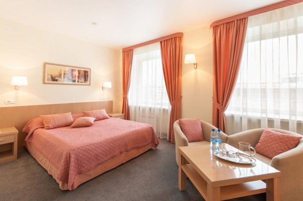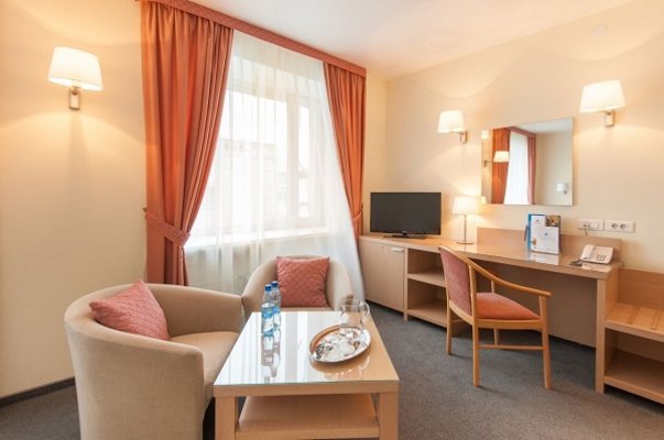 В отеле представлено 107 номеров от категории Стандарт до Апартаментов. Все номера оборудованы необходимой мебелью, кондиционером, современной техникой, мини-баром и собственной ванной комнатой с феном, набором мини-парфюмерии, комплектом полотенец, тапочками. Номера повышенной категории оборудованы плазменными панелями TV, отдельной зоной для сна и отдыха, оснащены бытовой техникой.