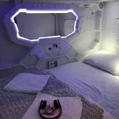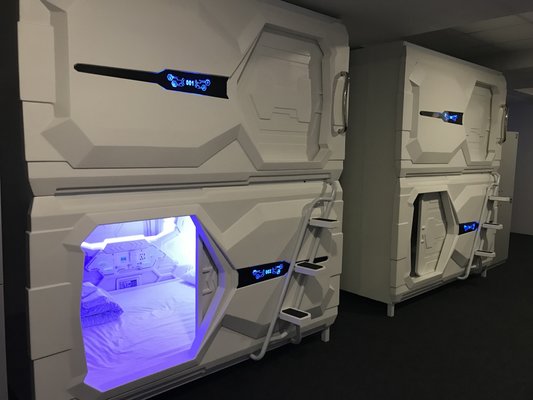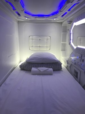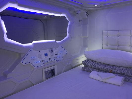 Гостей ожидают комфортные номера-капсулы рассчитанные на одного или двух человек, в каждом имеется зеркало, индивидуальный шкафчик, сейф, кондиционер, набор полотенец и маленький столик. На всей территории предоставляется бесплатный Wi-Fi. Удобства на этаже.