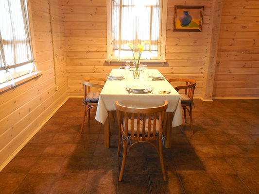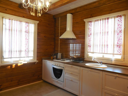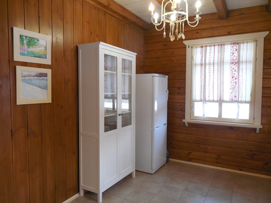 В коттедже есть кухня с электроплитой, холодильником, электрочайником и микроволновкой. Кухня полностью укомплектована столовыми принадлежностями, необходимыми для приготовления как легких закусок, так и изысканных блюд.