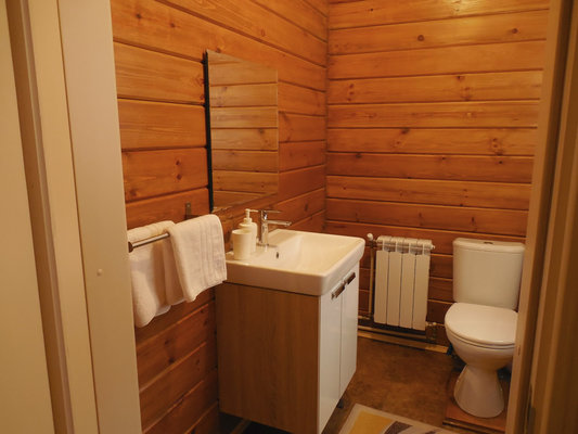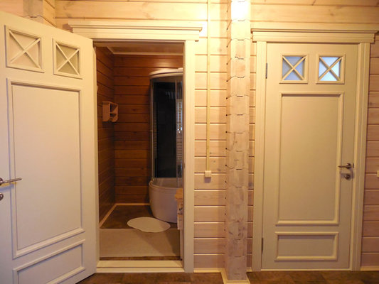 Расположена в доме. С душем и туалетом. Парная на 4 человека.