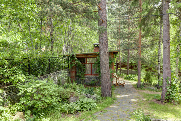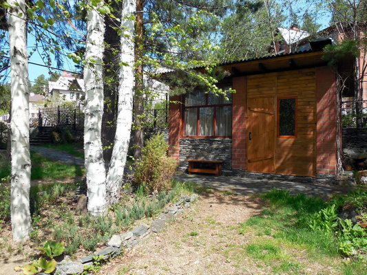 Есть беседка с мангалом. Осенью это место становится особенно живописным из-за красных листьев дикого винограда, который тянется по деревьям и стенам.