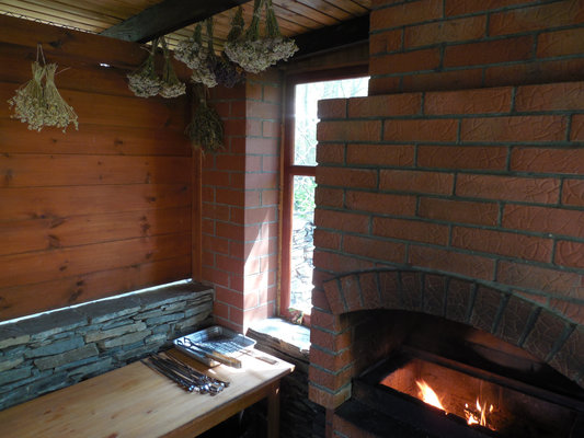- Площадка для приготовления пищи на огне с мангалом.
