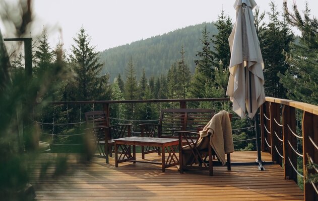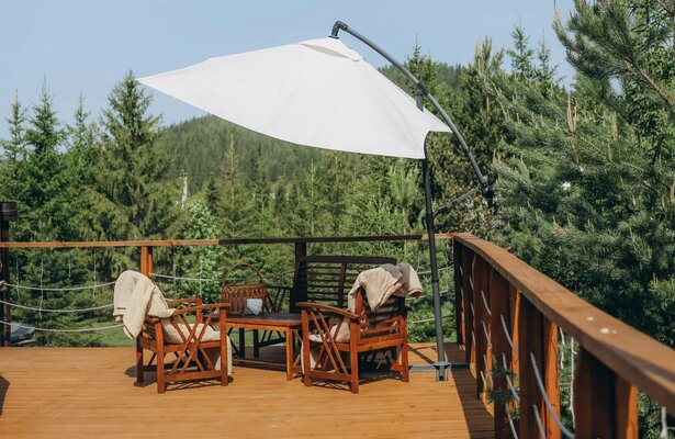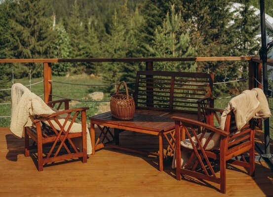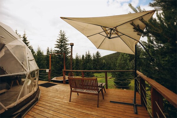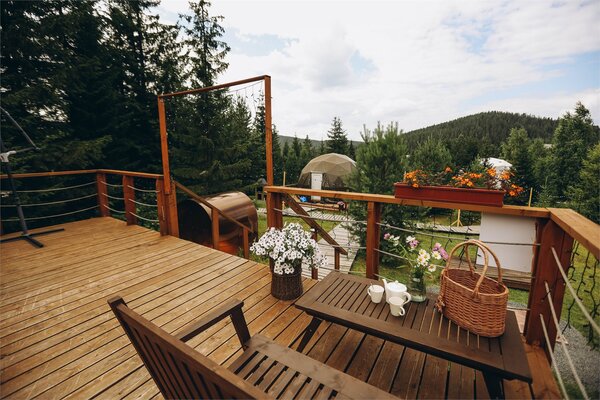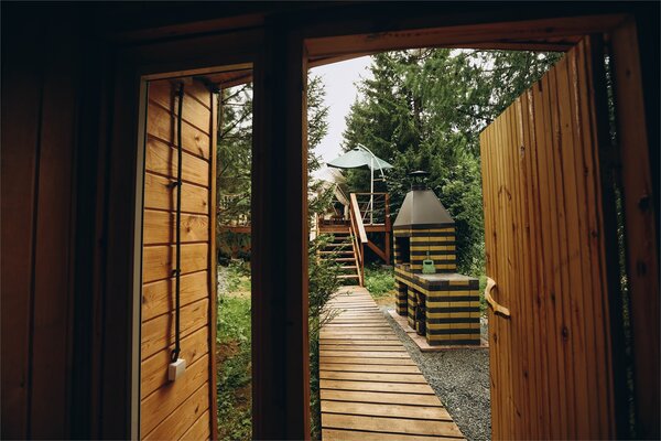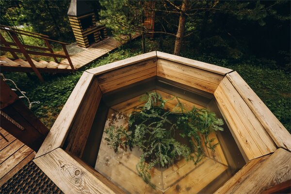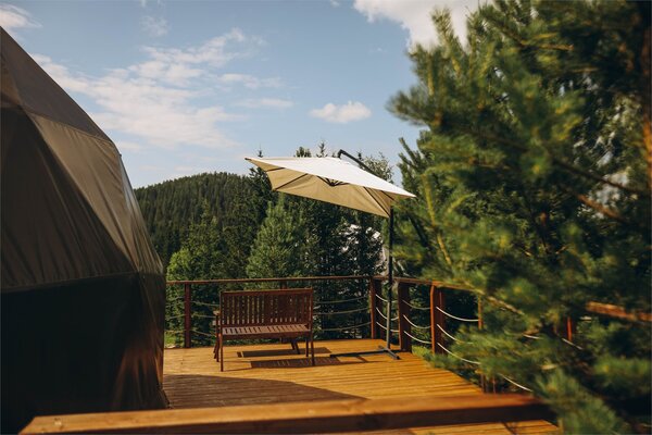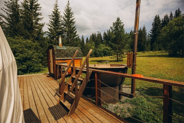Бани на террасе есть у шатра «в лесу» и шатра «на опушке».