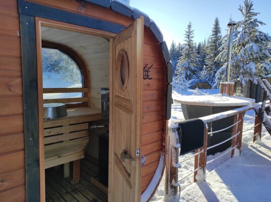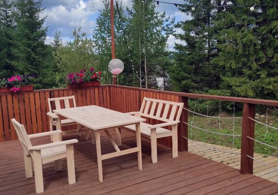 Баня в елях (до 4 гостей) с панорамным видом на Уральские горы. Баня расположена в лесу на склоне горы, благодаря этому открывается великолепный вид на горы и природу. Проведя пару часов в такой бане, вы не только получите физическое удовольствие, но и эстетическое от созерцания красоты уральской природы.