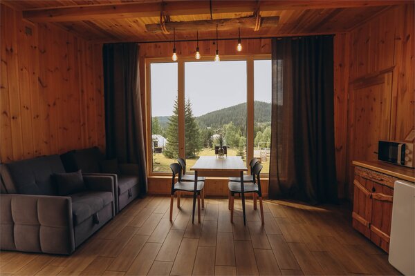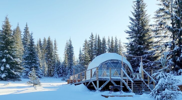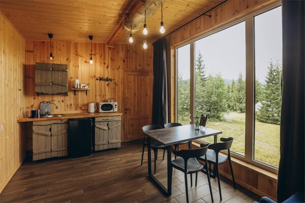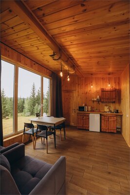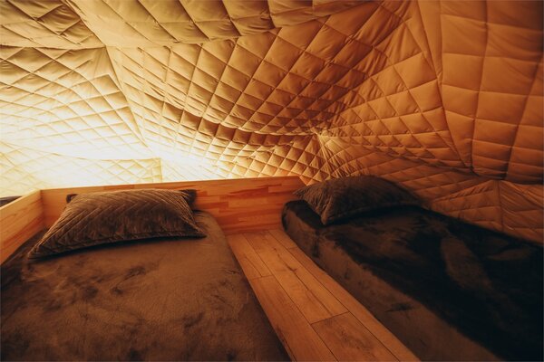 Концепция этого уединенного убежища основана на погружении в красоту природы: можно любоваться свежим воздухом, бриллиантами звездного неба, массивными горами и умиротворяющим пением птиц. В то же время уютные и хорошо отапливаемые домики оборудованы всем необходимым для комфортного проживания.