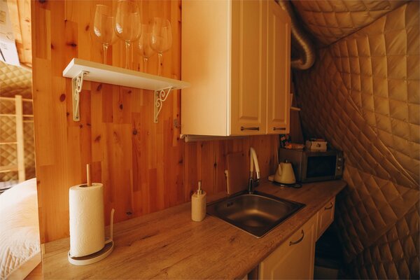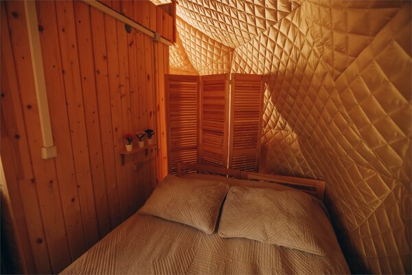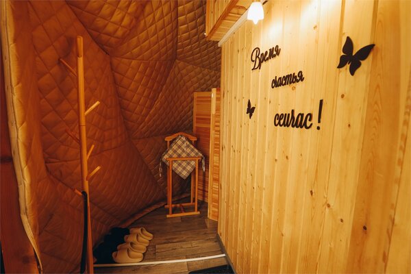 Для активного досуга предусмотрены захватывающие занятия: от расслабляющего парения в бане или чане до увлекательной рыбалки, экскурсий, настольных игр и водных развлечений, таких как САП-бординг и тюбинг. Просторный и стильный шатер вместимостью до 30 человек можно арендовать для мероприятий, мастер-классов или даже свадебных торжеств.