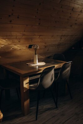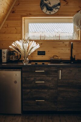 На охраняемой территории с лесным массивом оборудованы четыре уютных деревянных домика, каждый из которых неповторим и обладает собственной зоной отдыха. Скандинавский дизайн и террасы, гармонично вписанные в природный ландшафт, создают атмосферу уюта и беззаботного отдыха. Домики оснащены всеми удобствами для вашего комфортного пребывания.