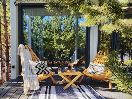 Уютный дом с панорамными окнами подарит вам захватывающий вид на окружающую природу. Здесь вы сможете расслабиться и зарядиться энергией.