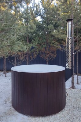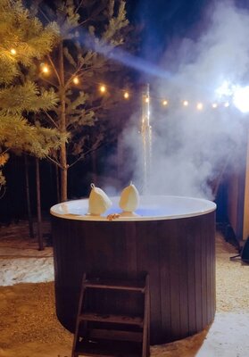В купель вмонтирована безопасная печь, которая растапливается дровами.