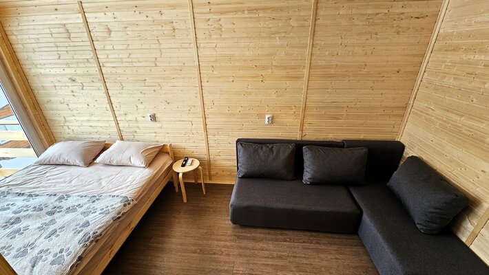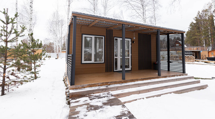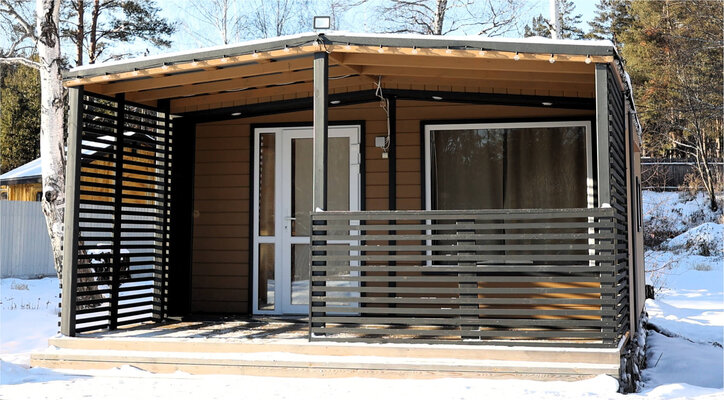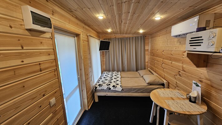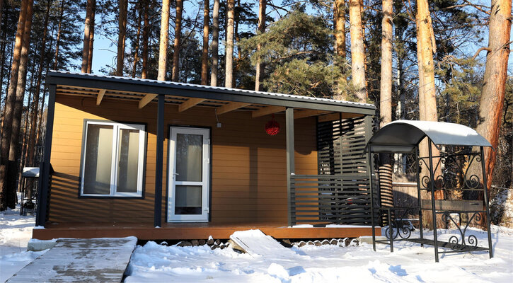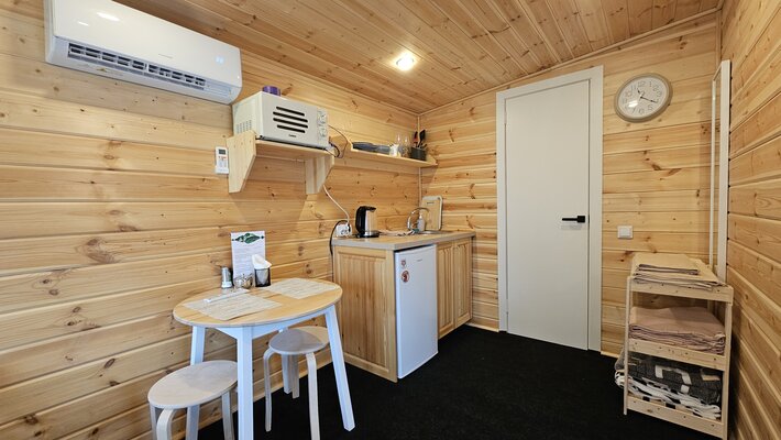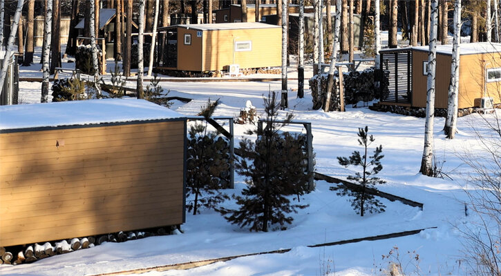 На территории располагаются тринадцать уютных домиков со всеми удобствами. В каждом домике есть теплые полы, кондиционеры, полностью оборудованные кухни и современные удобства. Для комфортного отдыха предусмотрены умные колонки, телевизоры и игровые приставки Xbox.