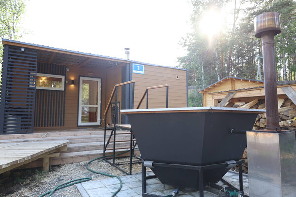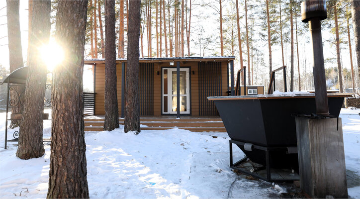 Гостей ожидает сибирский банный чан, отапливаемый дровами и расположенный на свежем воздухе. Он создаст незабываемую атмосферу, особенно в морозный зимний вечер, и доступен на протяжении всего времени парения в бане.