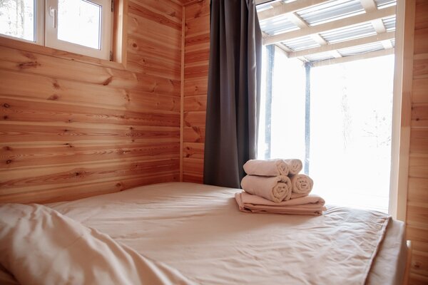 В глэмпинге гости могут насладиться отдыхом в одной из двух уютных русских бань, каждая из которых вмещает до четырех человек. Каждая баня оборудована отдельной парилкой, душевой, зоной для отдыха и туалетом, что создает комфортные условия для расслабления и восстановления сил.
