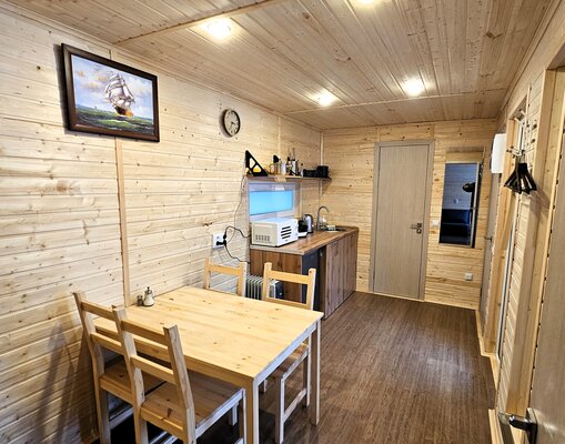 В уютном кафе глэмпинга вас ждет вкусный завтрак и ароматный кофе, приготовленные с любовью. Тепло камина создает атмосферу, в которой так приятно начинать новый день.