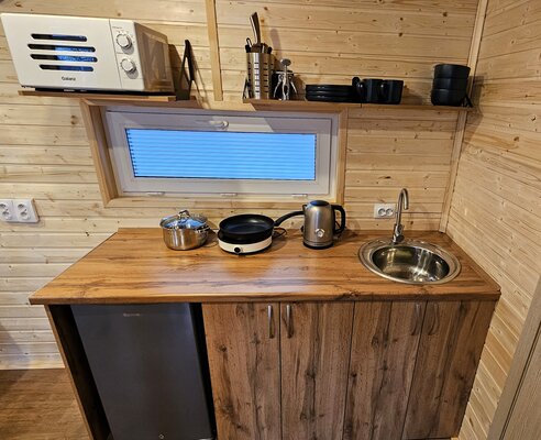 В глэмпинге предусмотрены три закрытые беседки с мангалами, где можно приготовить любимые блюда на свежем воздухе даже в летний период, когда запрещено разводить открытый огонь.