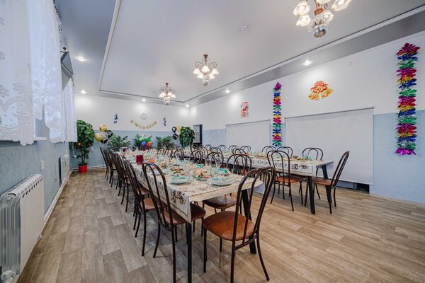 Утолить голод можно на общей кухне, где есть вся необходимая техника и посуда для приготовления пищи. А для тех, кто предпочитает сконцентрироваться на отдыхе, работает столовая, предлагающая разнообразное комплексное питание.