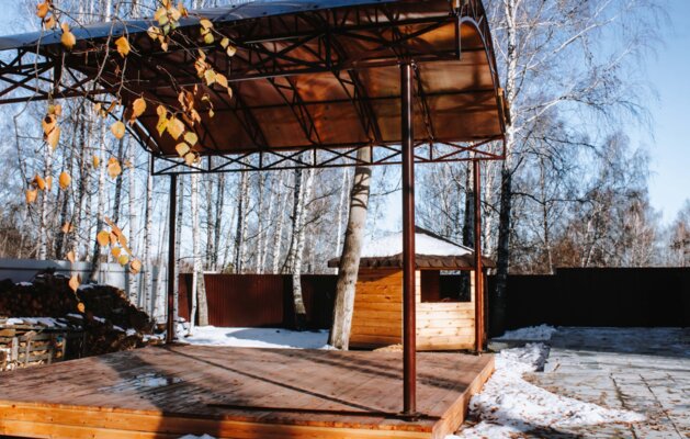 Уютная беседка с мангальной зоной позволит вам провести время с близкими, насладившись вкусным шашлыком или пловом на свежем воздухе.