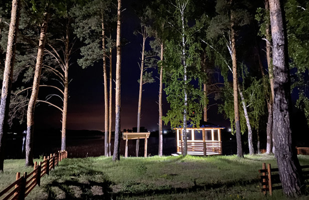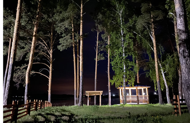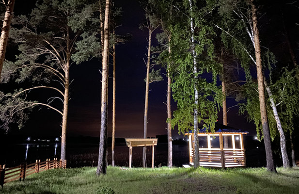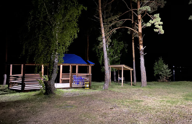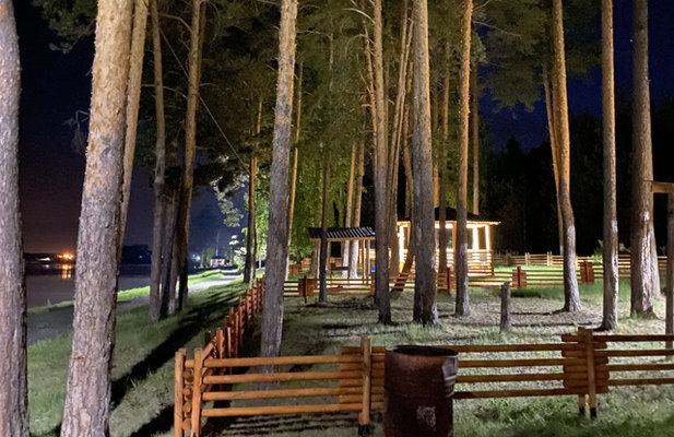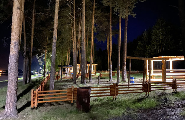 До 10 человек. Вдоль береговой линии в лесной зоне Паршинского рыбоводного участка. Имеется электричество и освещение, мангал.