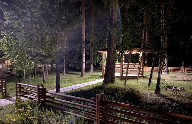 До 10 человек. Вдоль береговой линии Паршинского рыбоводного участка. Имеется электричество и освещение.