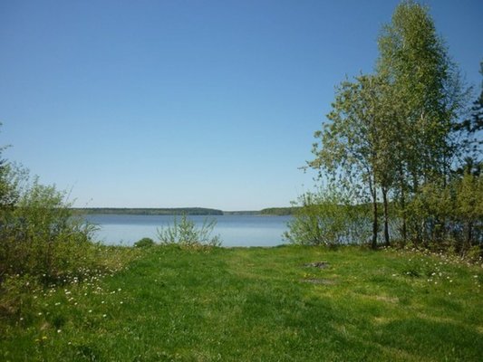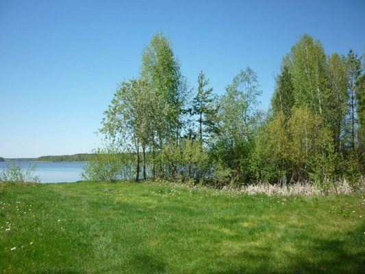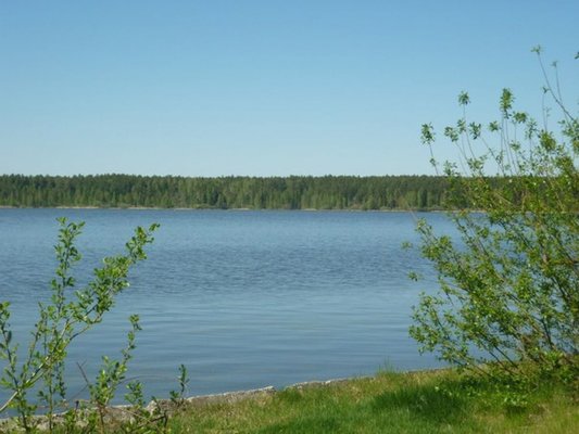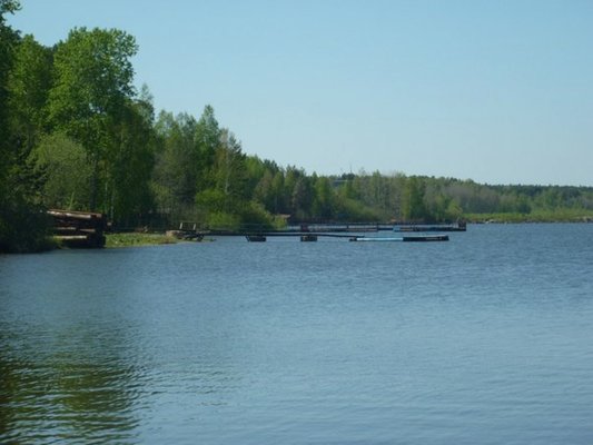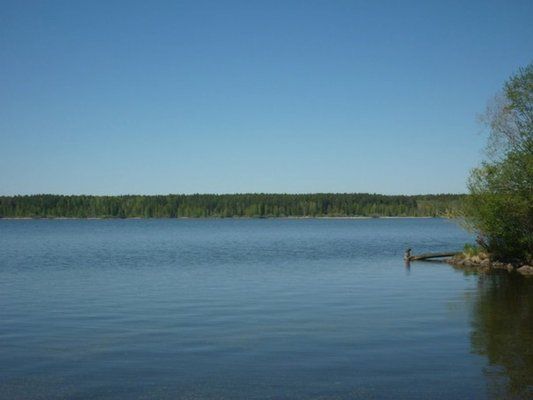 На берегу озера есть небольшой пляж.