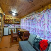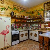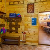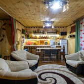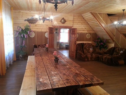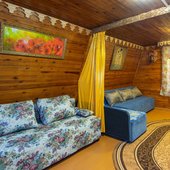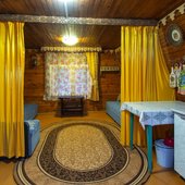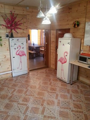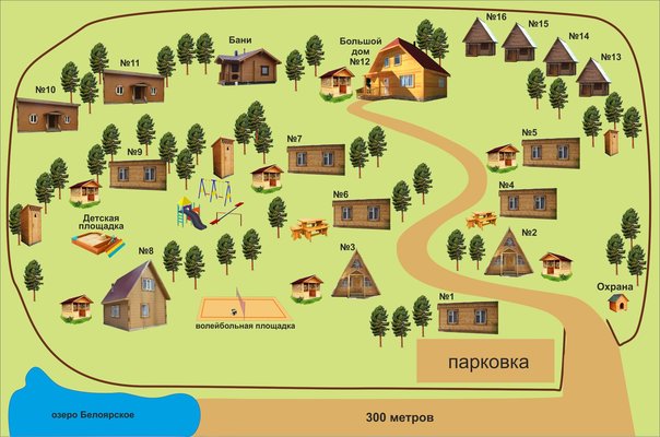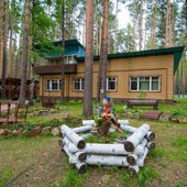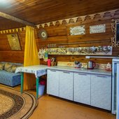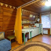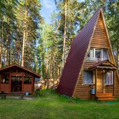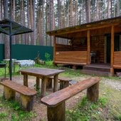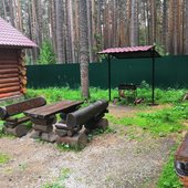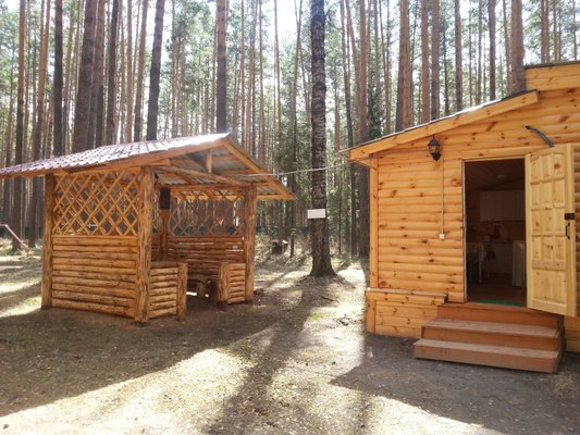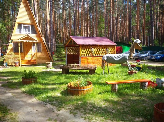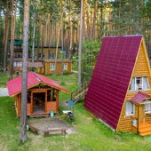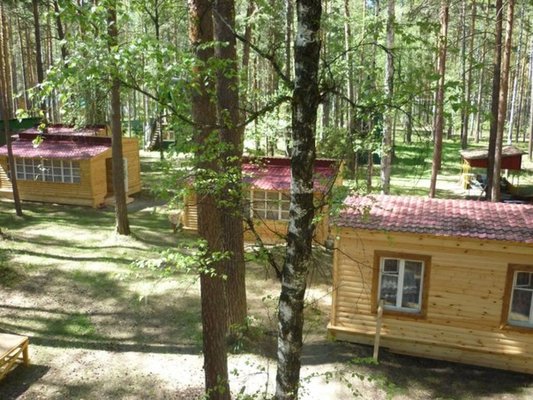 На территории базы расположены 2 бани и 15 отдельно стоящих деревянных домиков, для разных компаний. Оснащены всем необходимым для комфортного отдыха с детьми, в домиках есть детские кроватки, игрушки.